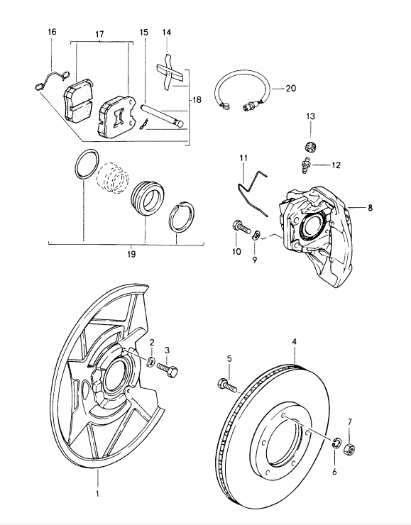 Scheibenbremse Vorderachse, Schwimmsattel, Bj.85-89