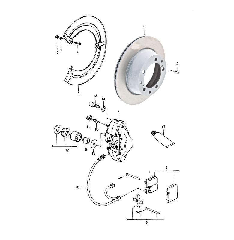 Scheibenbremsen Hinterachse 964 C2, 2-Kolben-Sattel