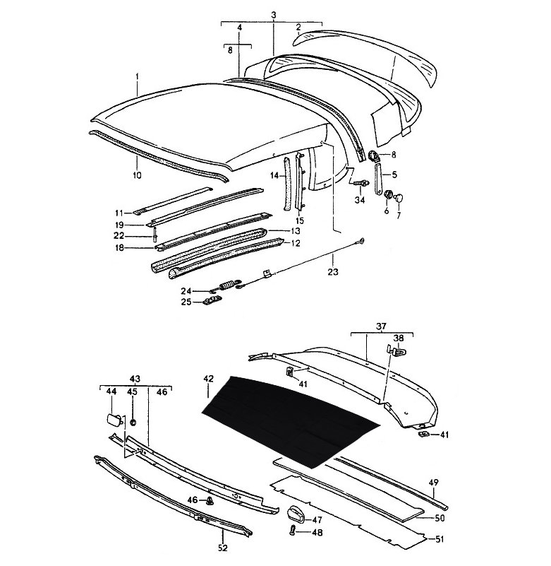 Verdeckbezug / Abdichtung / Einzelteile Cabrio